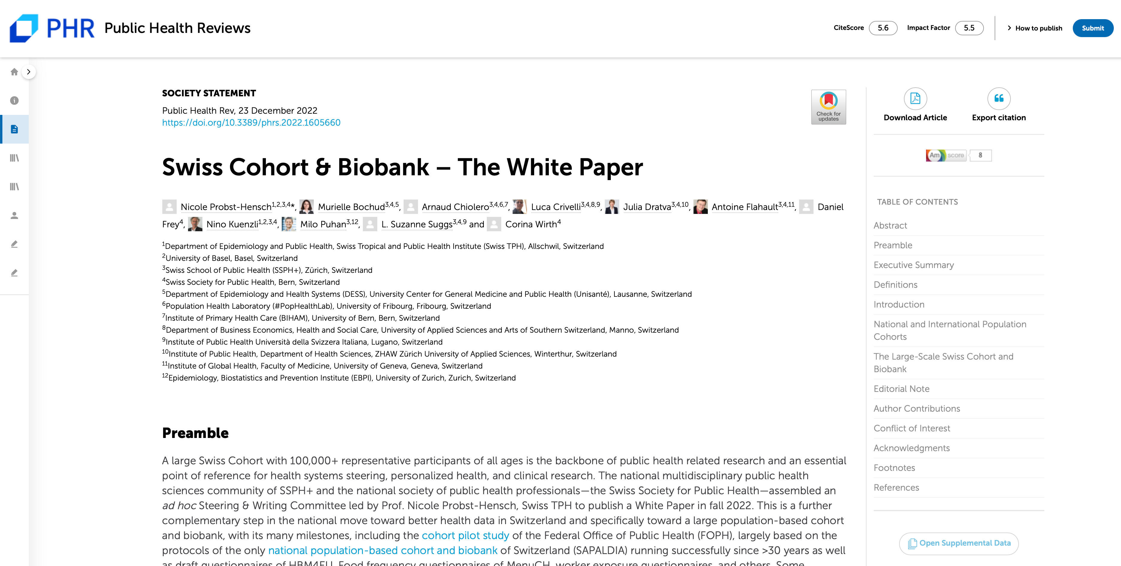 Die PHU-Gruppe unter der Leitung von Prof. Nicole Probst-Hensch hat "Swiss Cohort & Biobank - The White Paper" im Fachjournal Public Health Reviews der SSPH+ veröffentlicht.