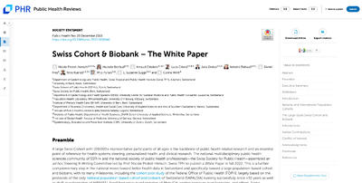 Le groupe d'auteurs de PHU, dirigé par le professeur Nicole Probst-Hensch, a publié "Swiss Cohort & Biobank - The White Paper" dans la revue Public Health Reviews de SSPH+.
